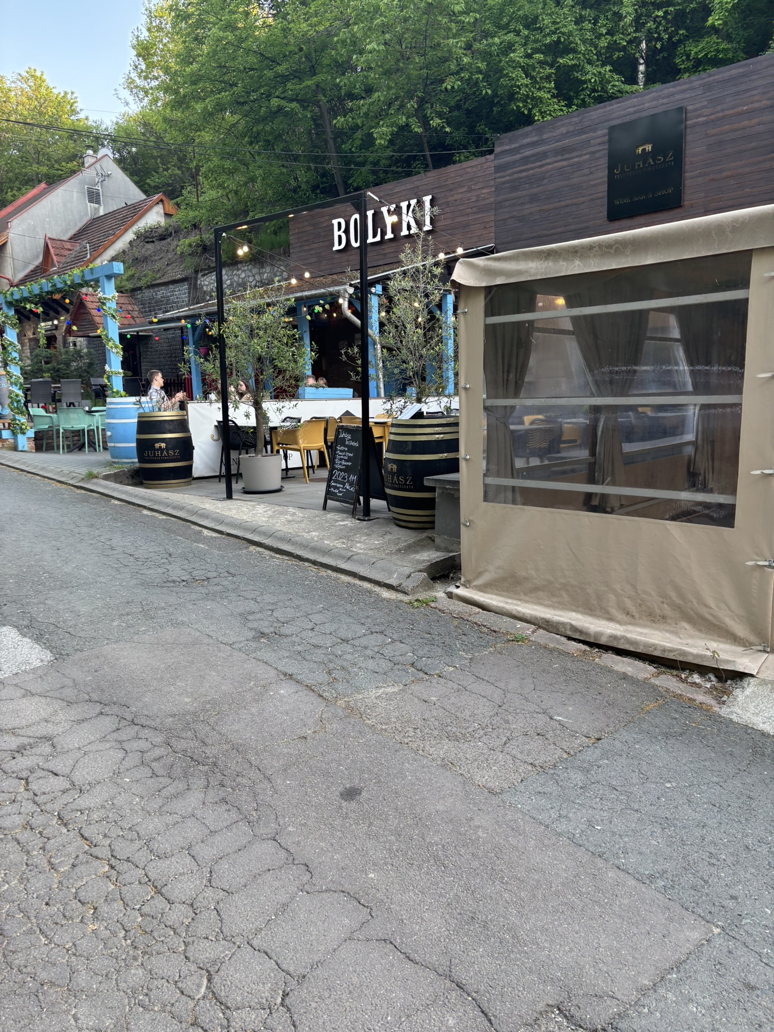 Słońce pomału zachodzi, a ja kieruję się z powrotem w stronę, nazwijmy to tak - winnej części miasta. Czas spróbować wspomnianego Egri Csillag i zjeść coś dobrego. Co ciekawe, w końcu udało mi się dostać smażony ser i to nie byle jaki. Węgrzy zaserwowali mi ser trapistów razem z panierowanymi warzywami i sosem tatarskim. Nie wiedziałem nawet, ze w tym kraju tego typu sery są produkowane. Muzę przyznać, ze jest to piękne, kulinarne zakończenie kolejnego dnia wyprawy.